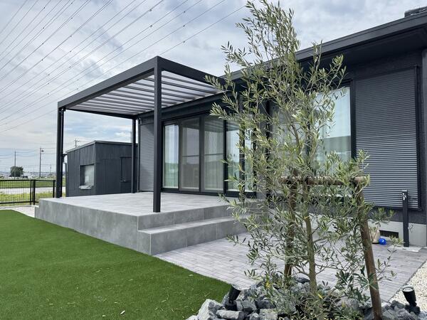 LIXIL カーポートSCワイド・タイル門袖のオープン外構