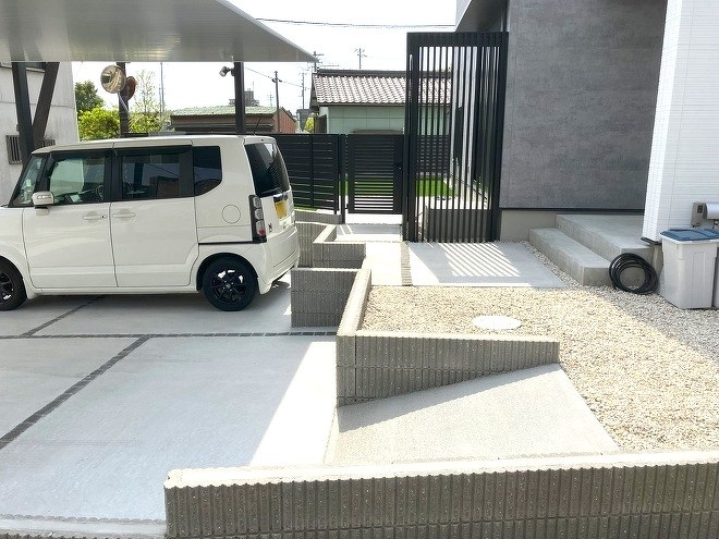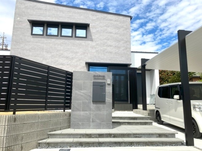 大府市 直線的なラインとモノトーンカラーが映えるファサードデザイン 主な使用商材 LIXIL カーポートSC LIXIL プラスGスクリーンフェンス LIXIL フェンスAB YS3型 門・アプローチ廻り 車庫廻り 庭廻り 外壁・フェンス 新築外構 セミクローズスタイル シンプルモダン アルミ 自然石 タイル・陶器 ブロック 砂利・砕石 コンクリート舗装 人工芝 カーポート フェンス スクリーンフェンス 表札・ポスト 06_22 他の施工事例 OTHER WORKS モルタルアート 門袖の新築外構 外構工事 「アウトドアリビング」という選択肢 LIXIL カーポートSC 梁ハネ出し仕様 かっこよくキメル!話題のFⅡ。 3台用カーポート シンプルでノイズレスなデザインカーポート 建物と調和したファサード 暮らしにゆとりをもたらすプラスワン空間 夜の表情も美しい