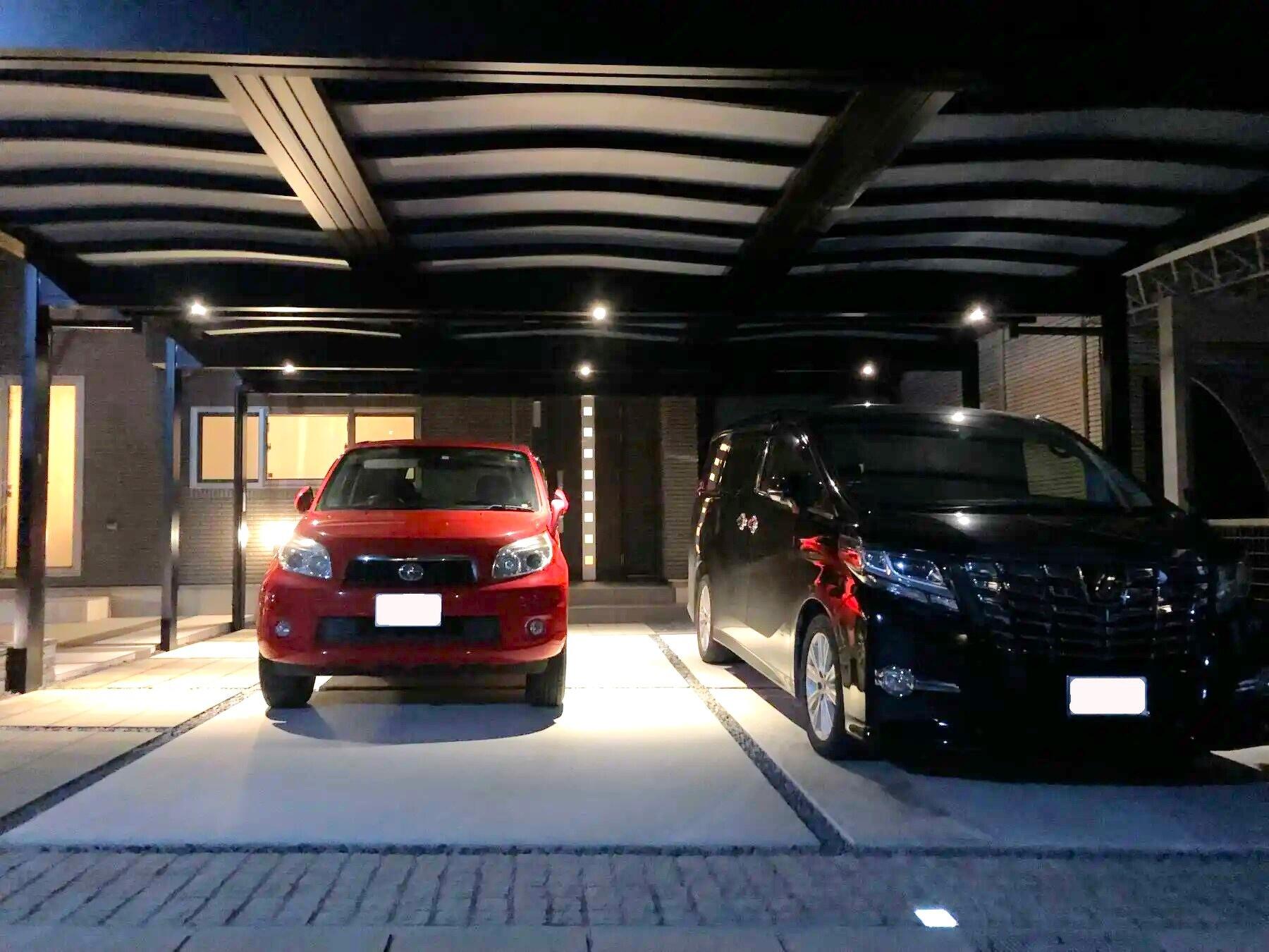 道路沿いにも駐車したいので、柱が邪魔にならぬように梁を目一杯延長したい。