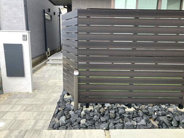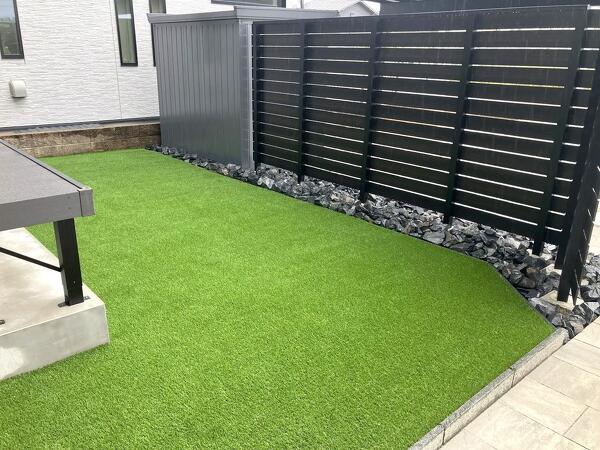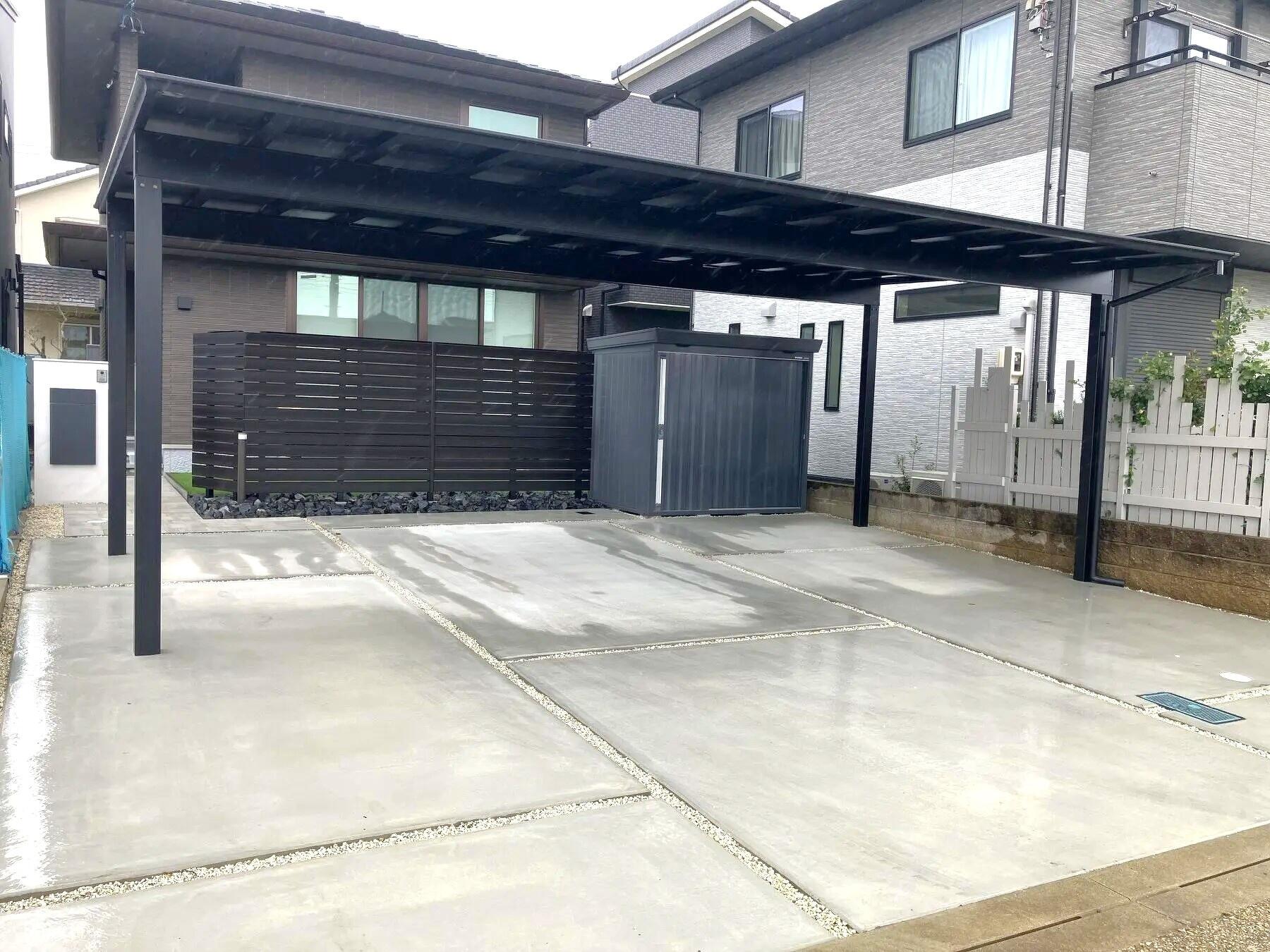 人工芝、目隠し、物置、カーポートを全体的にブラック系にまとめて機能的に使いたい