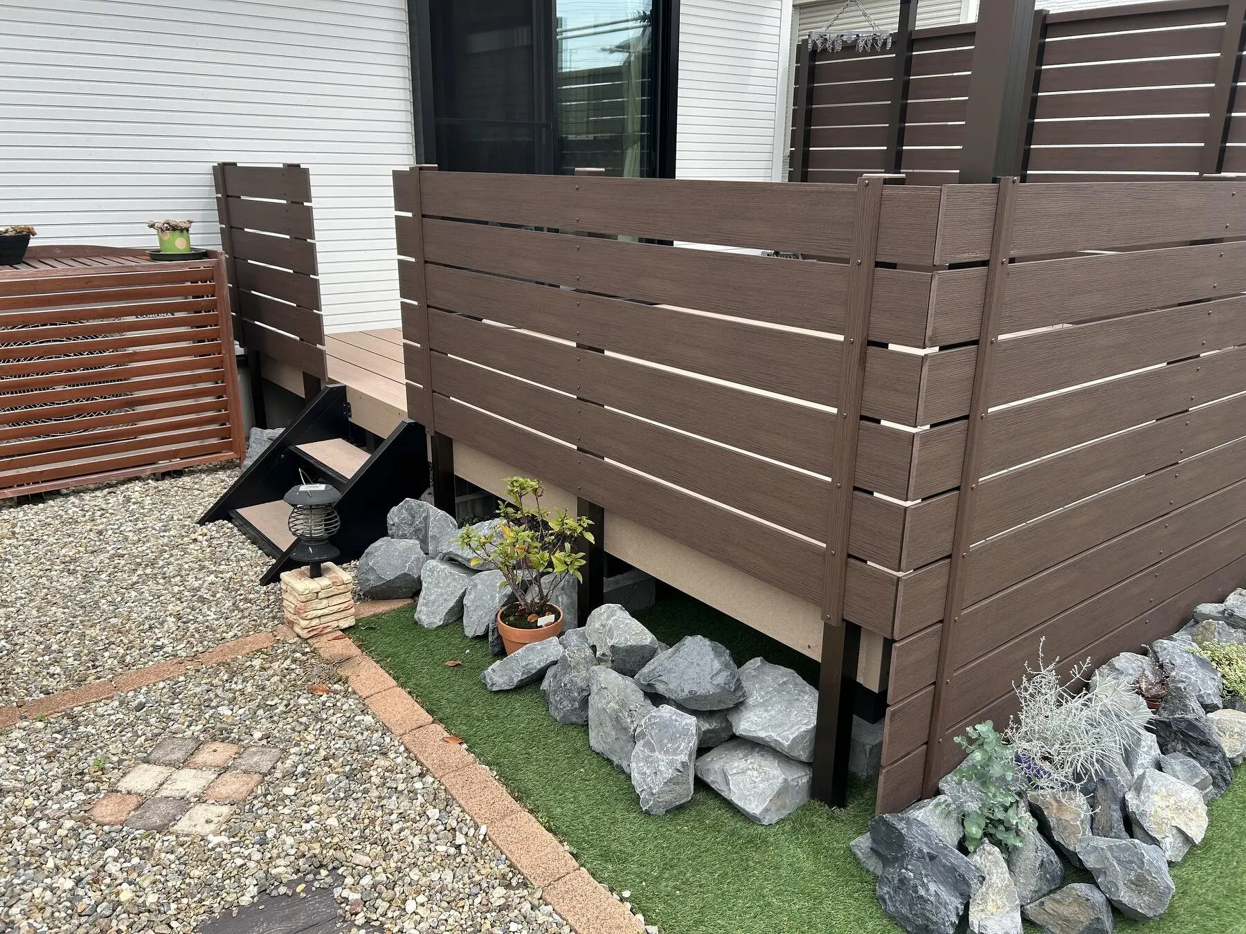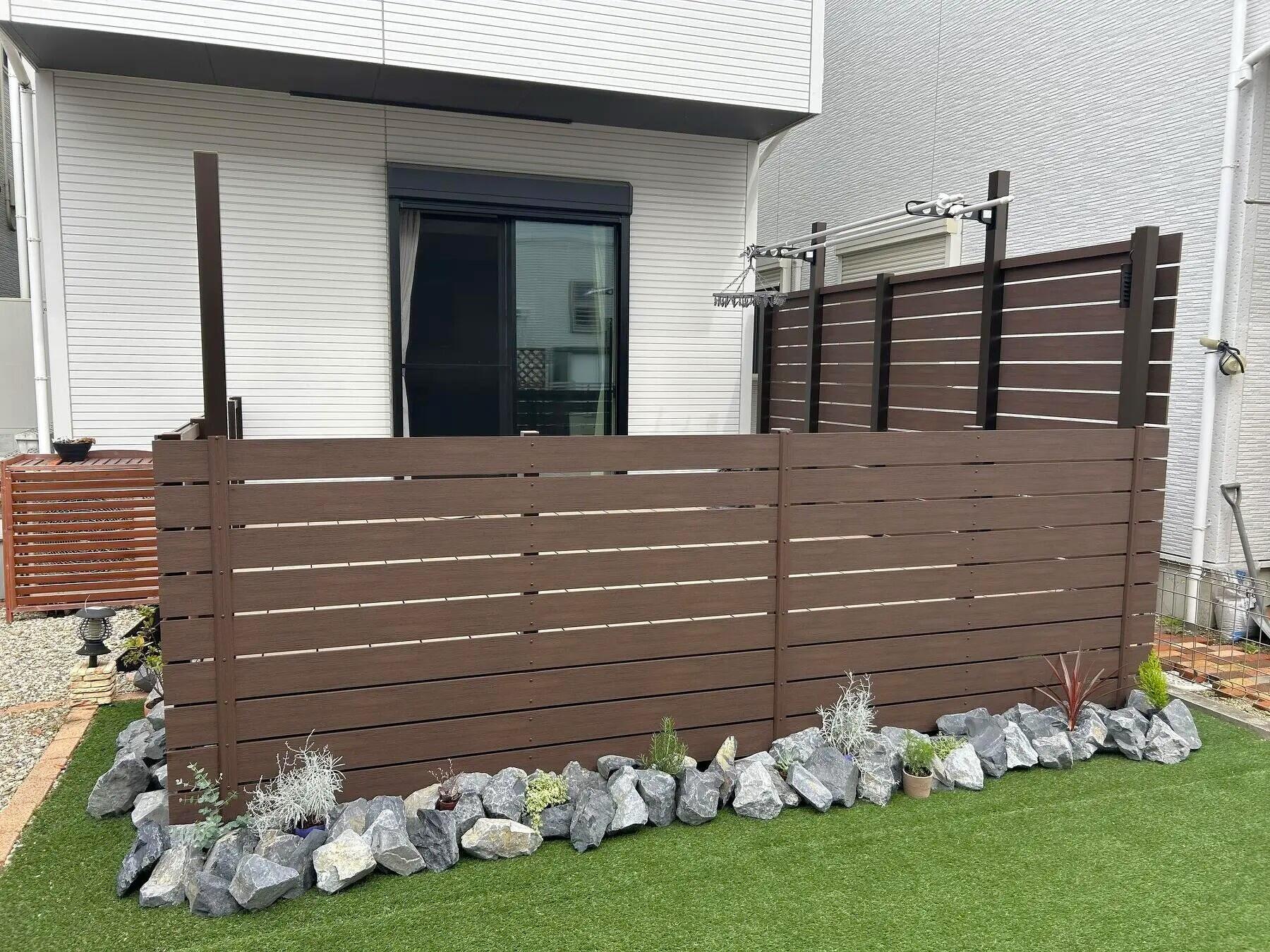 高浜市 愛犬と過ごす、贅沢なひととき。広々としたウッドデッキが、家族のくつろぎ空間に お客様のご要望 既存デッキの出幅を広げたい 広くなったスペースに洗濯を干せるようにもしたい 隣地部はさりげなく目隠しし、他もフェンスを付けたい 2F手すりからシェードも取付したい 弊社からの提案と特徴・こだわり デッキの雰囲気に合う木目フェンス フェンスの柱を利用して物干し、シェード用フックを取付 床下の隙間が目立たないように割栗石で足元を隠した 主な使用商材 LIXIL 樹ら楽ステージ 壁付け物干し タカショー ワリカン B-Life.s Bウッドスタイル極 Before After 庭廻り フェンス ウッドデッキ 事例ID:21_06 他の施工事例 OTHER WORKS おしゃれさを際立たせた 余白が映える外構 マンションの宅配ボックス 外構工事 シャープな外観に合わせたスタイリッシュな新築外構 かっこよくキメル!話題のFⅡ。 LIXIL カーポートSC 建物と自然に馴染むオールブラック Uスタイルアゼスト 愛犬と過ごす、贅沢なひととき。広々としたウッドデッキが、家族... 庭リフォーム工事
