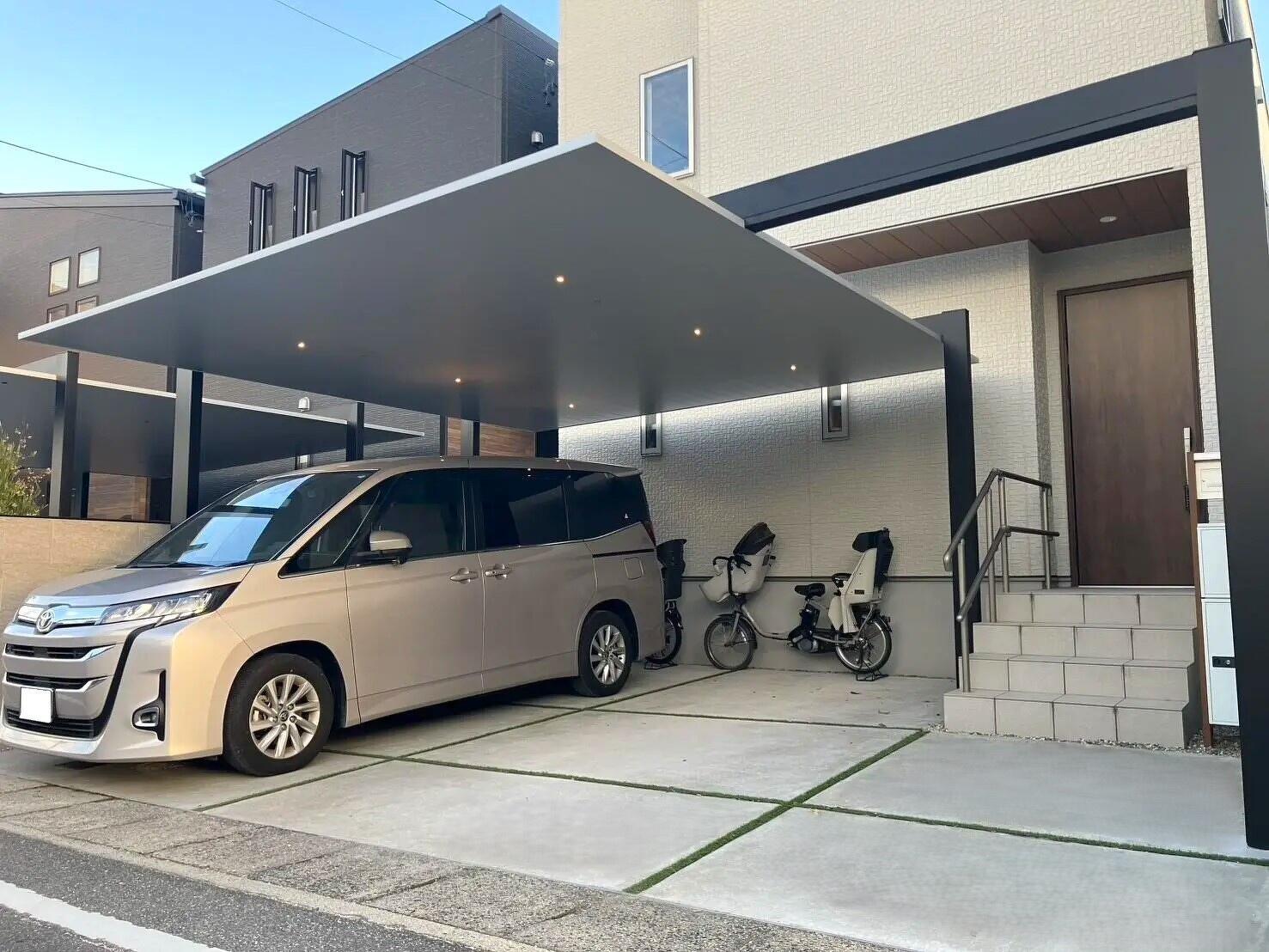 刈谷市 シンプルでノイズレスなデザインカーポート お客様のご要望 2台用のカーポートが欲しい 照明をつけたい 弊社からの提案と特徴・こだわり カーポートSCをを提案 玄関ポーチの出があるため前列のみ梁延長をし、駐車しやすいように提案してみました 主な使用商材 LIXIL カーポートSC <柱・梁:ブラック 屋根:ナチュラルシルバー> Before After デザインや使い勝手で選べるダウンライト 梁部分を延長してエントランスゲートに。 車庫廻り 事例ID:29_09 他の施工事例 OTHER WORKS 「白×グレー」が織りなす静かな美しさ シャープな外観に合わせたスタイリッシュな新築外構 外構工事 道路勾配に合うカーポートは、コレだ! オープン外構 高級リゾートのお庭 ~the Luxury Garden~ 第33回 タカショー庭空間施工例コンテスト 5thROOM & ガーデン部門 銅賞 暮らしにゆとりをもたらすプラスワン空間 夜の表情も美しい おしゃれさを際立たせた 余白が映える外構 3台用カーポート