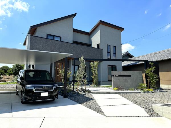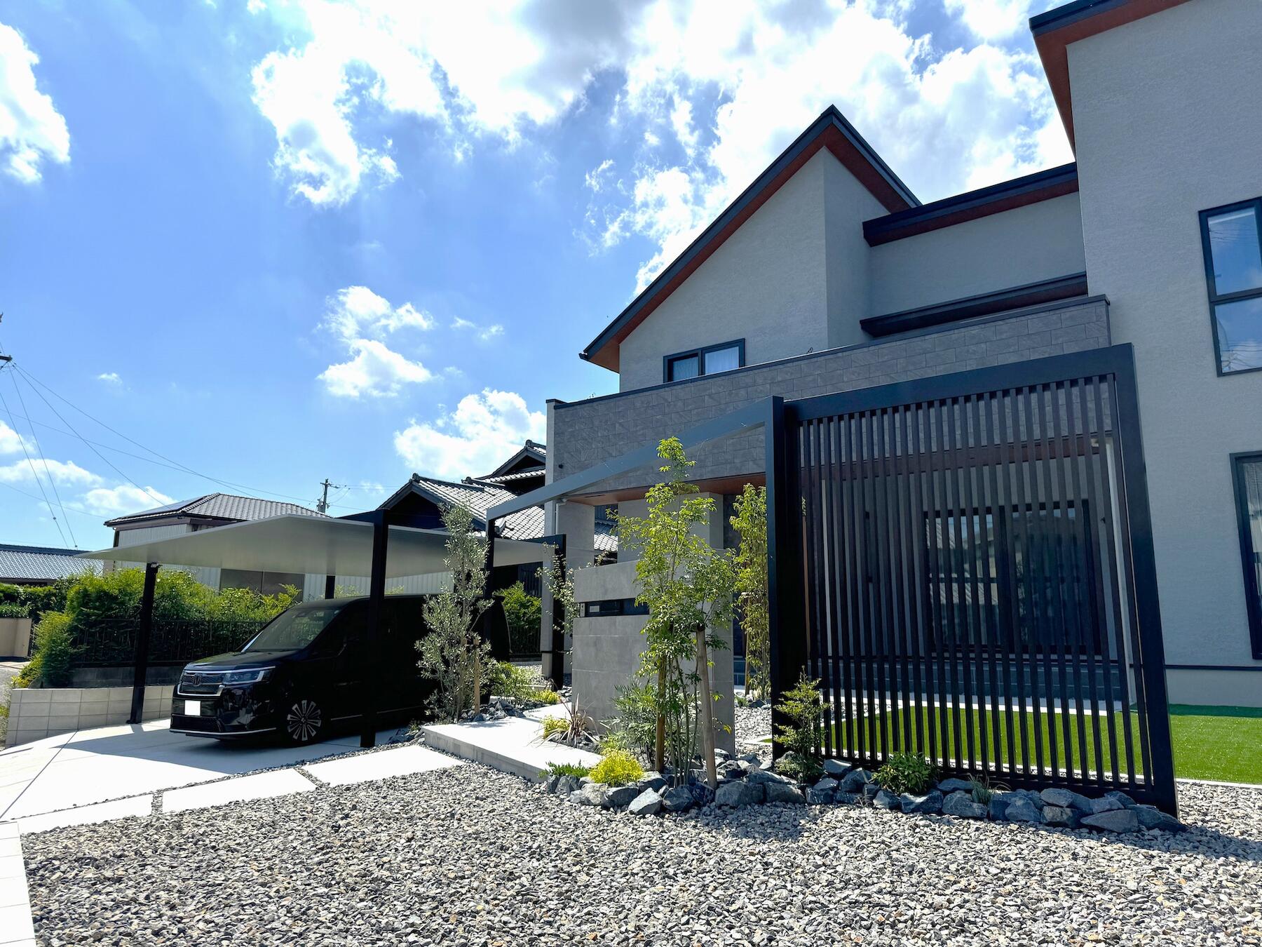 外観の雰囲気と調和するスタイリッシュな外構 弊社からの提案と特徴・こだわり シンプルながらもプラスGの直線的なデザインと石目調のタイル門柱が玄関アプローチをスタイリッシュに演出。 駐車スペースのカーポートSCはシャープな住宅の外観を損なうことなく見事に調和しています。 緩やかに視線を遮るGスクリーンは通りからの視線を気にせず、 開放的な空間を楽しむことが出来ます。 主な使用商材 LIXIL プラスG Gフレーム LIXIL プラスG Gスクリーン LIXIL カーポートSC 家の外観に合わせたエクステリア空間 外からの目隠し効果を高めつつ開放感を両立 シンプルながらも確かな存在感を放つゲート スタイリッシュなデザインのカーポートSC 新築外構 アルミ タイル・陶器 植栽 カーポート スクリーンフェンス SC アルミ屋根カーポート 他の施工事例 OTHER WORKS 住まいの印象をワンランクアップ LIXIL カーポートSC 梁ハネ出し仕様 光と影がつくる、ワンランク上の外構デザイン Uスタイルアゼスト 建物と調和したファサード 夜景に映える、ラグジュアリーなカーポート 住まいの品格を高める「直線美」 雨にも夜にも強い味方のサイクルポート 素材感が魅せる、門まわり おしゃれさを際立たせた 余白が映える外構