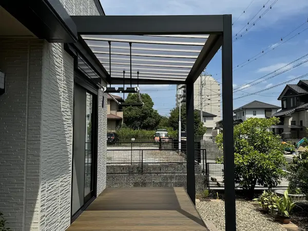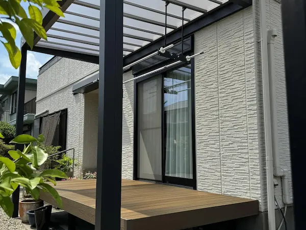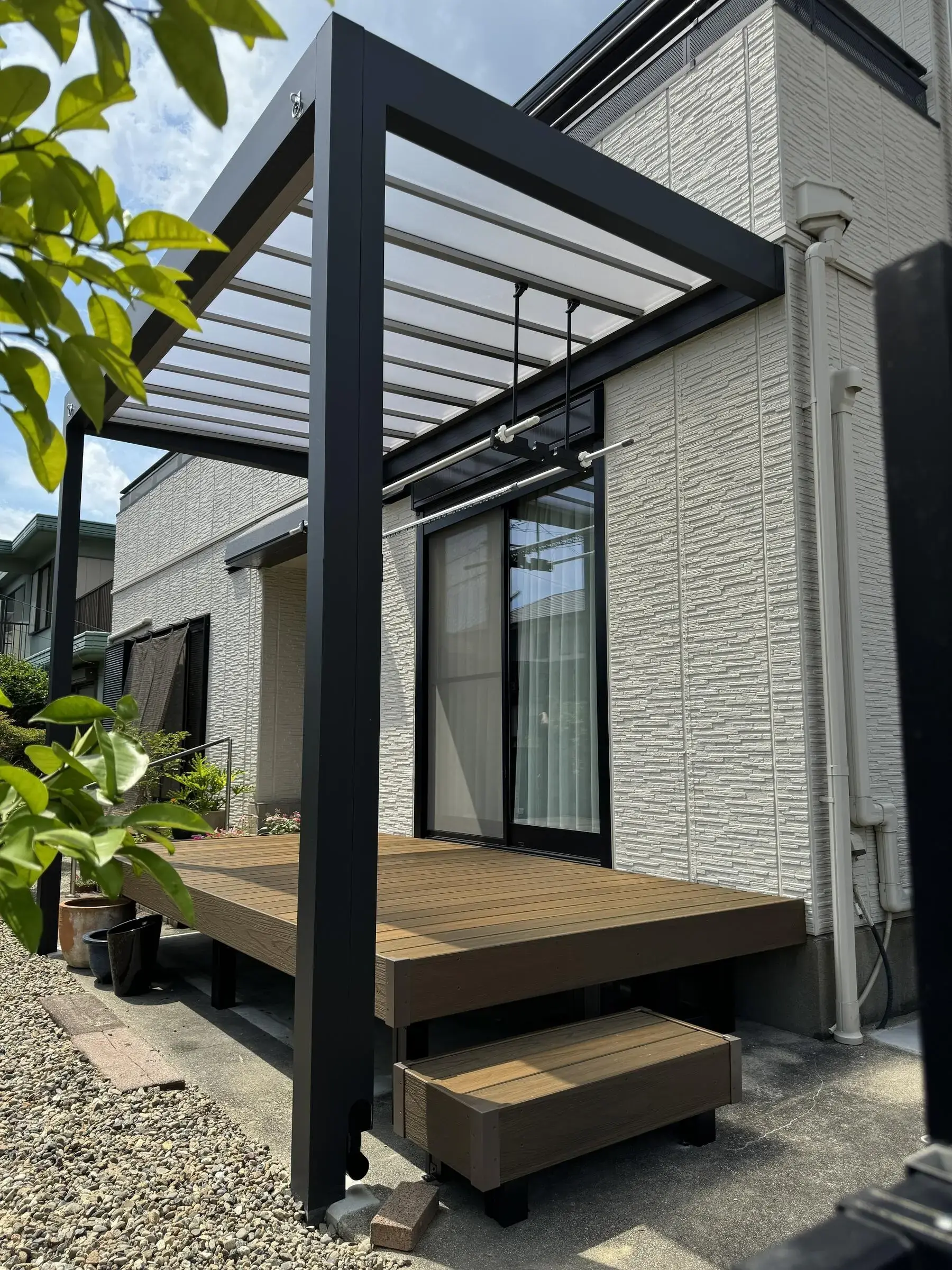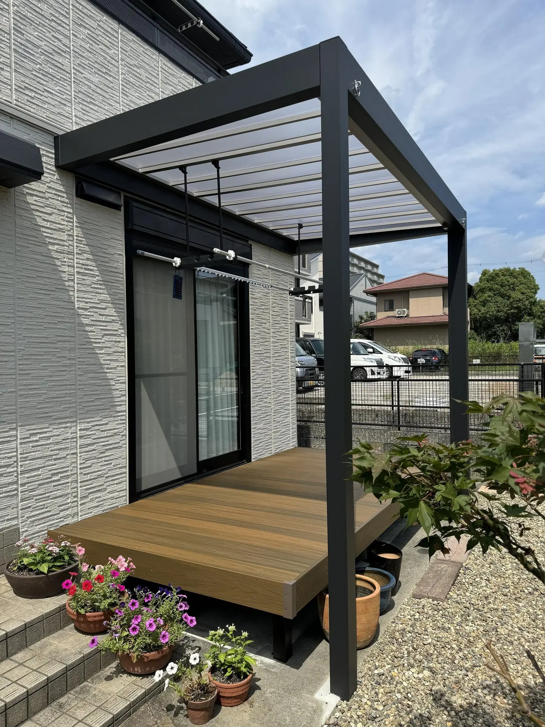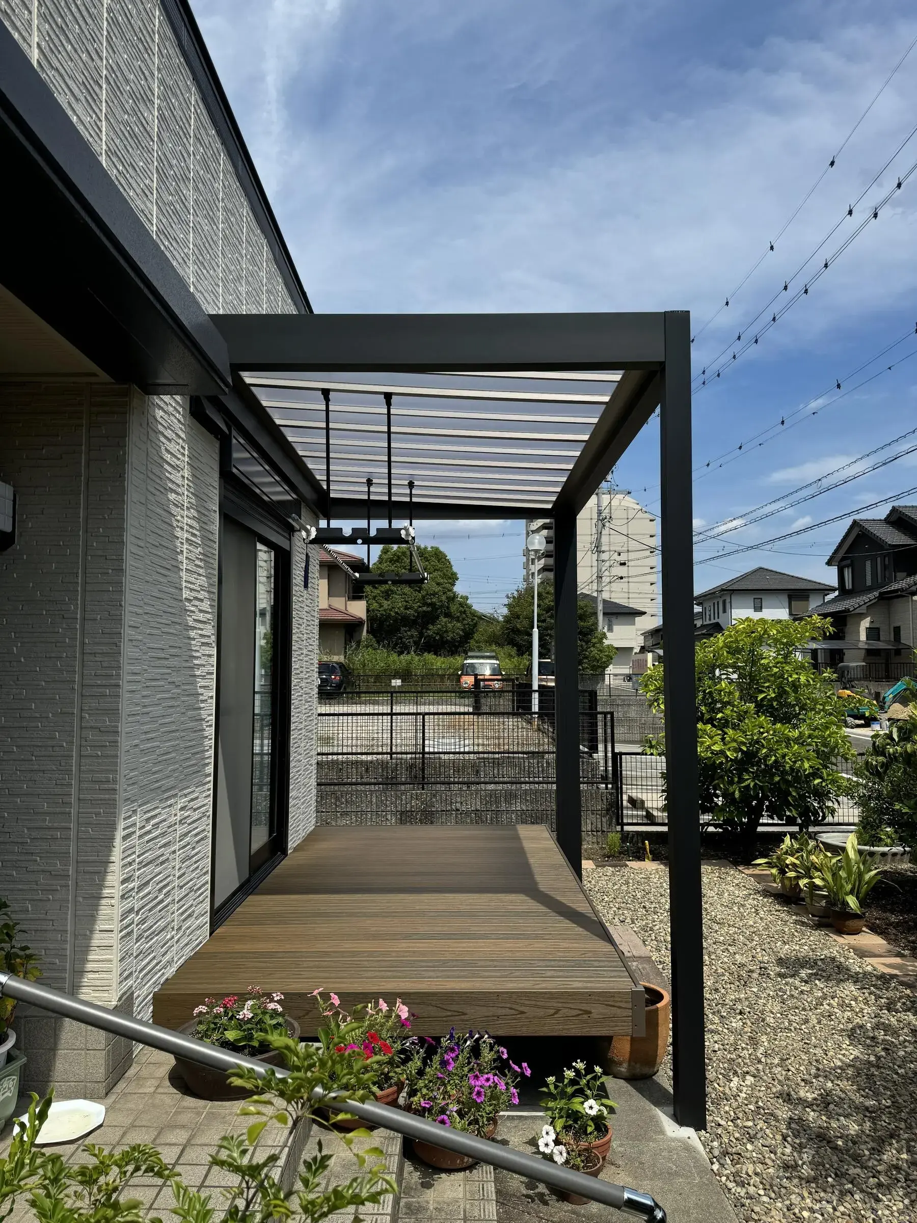 テラス屋根で楽しむアウトドアリビング 弊社からの提案と特徴・こだわり 日常に特別感を添えるウッドデッキ。 テラス屋根があるから突然の雨でも安心。 庭が主役になるシンプルモダンなデザインです。 四季を楽しむことができる空間をご提案しました。 建物の外観と美しく調和するルーフ空間 広々スペースでBBQや読書も快適に テラス屋根があるから突然の雨でも安心 庭廻り シンプルモダン テラス屋根 木樹脂デッキ 他の施工事例 OTHER WORKS オーダーメイド製の洗濯物干し場 天然芝からお手入れ不要の砂利スペースへ オープン外構 「アウトドアリビング」という選択肢 庭リフォーム工事 光と影がつくる、ワンランク上の外構デザイン 外構工事 シンプルでノイズレスなデザインカーポート 暮らしの質、ワンランクアップ。 おしゃれさを際立たせた 余白が映える外構
