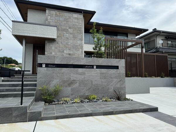 石調タイル門塀とLIXIL+Gスクリーン