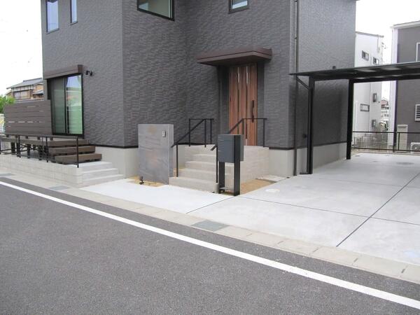 シャープな外観に合わせたスタイリッシュな新築外構